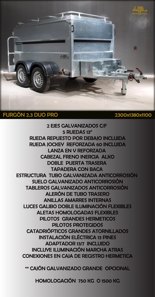 CERRADOS FURGON 1.8 👇 FURGÓN 1.8 BASCULANTE 👇 CARPFISHING 👇 FURGÓN 2.3 ONE 👇 FURGÓN 2.3 DUO PRO👇 VIRIATO PRO FURGÓN 👇 Más modelos cerrados en la seccion Toldos REMOLQUES en stock para entregas inmediatas.